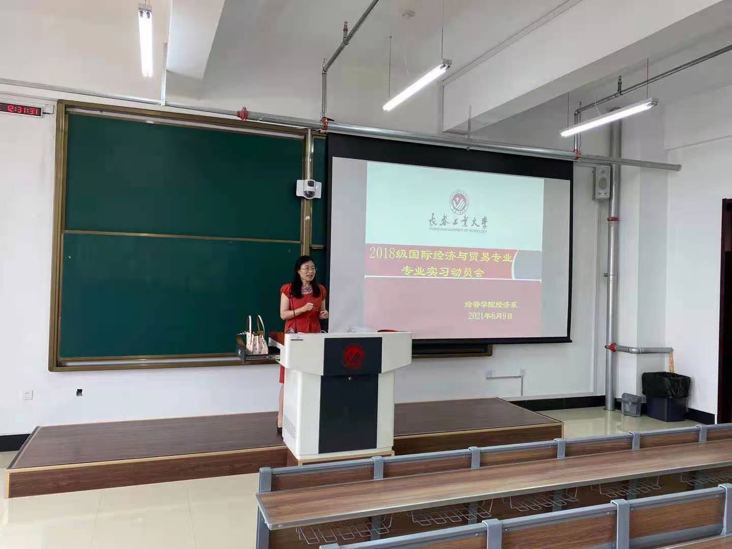 6月9日中午12:30,经济系副主任高鹤带领国际经济与贸易专业指导教师,面向2018级全体员工在419教室召开了专业实习动员会。