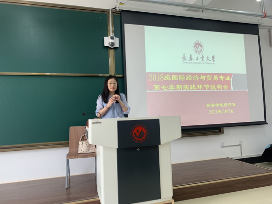为了使教师和员工更加了解第七学期实践环节的相关工作安排,由经济系副主任高鹤牵头,于2021年7月7日在北湖东区教学主楼419教师召开2018级国际经济与贸易专业第七学期实践环节说明会,国贸专业全体教师和2018级国贸员工参加了本次说明会。