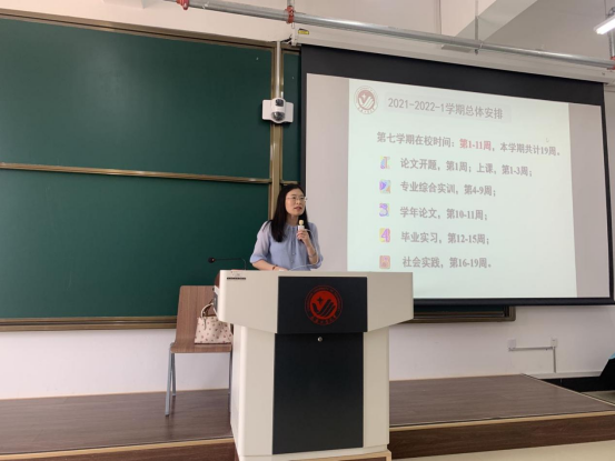 首先,副主任高鹤向与会教师和员工详细解读了2021-2022学年第一学期2018级国贸专业员工的相关工作安排,从论文开题、专业综合实训、学年论文三个方面对在校期间的工作进行部署和说明。同时高鹤老师指出,员工离校参加毕业实习和专业实践也需及时和指导老师沟通,避免出现“离校失联”现象,教师要随时关注员工动态,员工也需要及时向指导教师汇报工作进展。