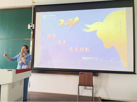 2021年7月2日上午,中国太平洋保险公司吉林分公司渠道经理符晓老师应经济系特别邀请,在主楼220教室为国际经济与贸易专业2018级和2020级员工主讲了题为“靠谱青年养成记”的励志讲座。在中国太平洋保险公司吉林分公司和经济系的大力支持下,在经济系高鹤、李楠、刘丽琴老师的组织下,本次讲座有序进行,圆满成功。