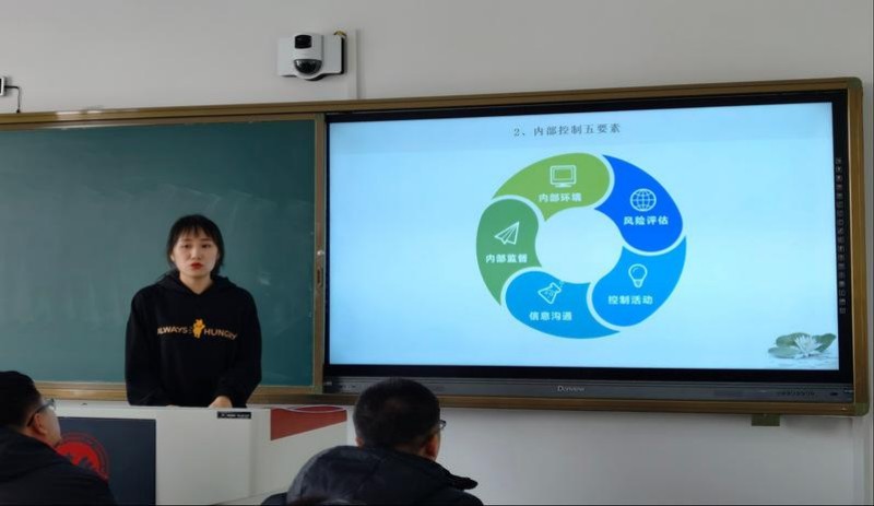 本次研讨会于2020年11月24日13:00于主楼427举行。此次研讨会由研一的杜若依,朱悦萌同学主讲。首先杜若依同学介绍了销售与收款业务内部控制研究,并以腾讯老干妈的乌龙事件为例。她先介绍了腾讯老干妈乌龙事件的始末,同时介绍了案例涉及到的内部控制定义和内部控制五要素等相关理论知识。而后,她采用理论与实践相结合的方法为大家阐述了本次乌龙事情发生的原因,通过理论实际相结合的方式,将大家带入情景之中,充分地调动了大家主动学习的积极性。最后,她根据本案例提出思考,引导大家深入学习,学会思考,擅于归纳总结。