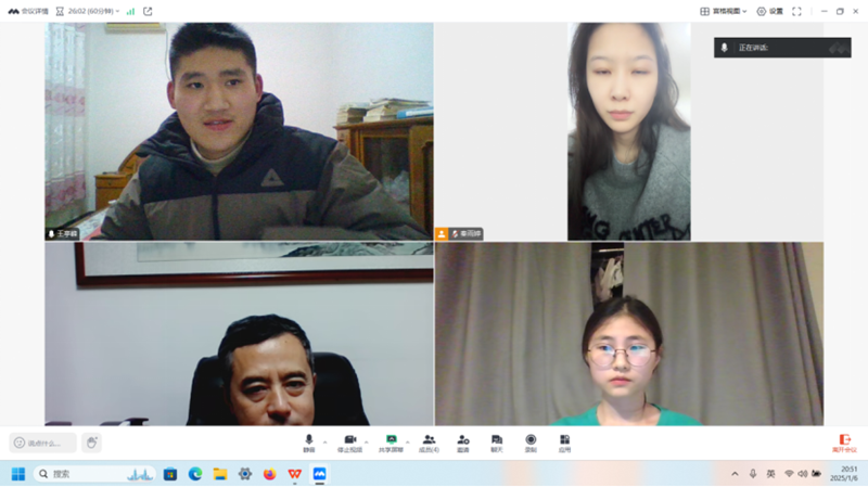 公司通讯(通讯员:王亭峰)为强化研究生论文研究学习并了解员工学术进展,张海龙教授通过腾讯会议平台召开了一次线上的学习会议,时间是2025年1月6日19:40~20:50。