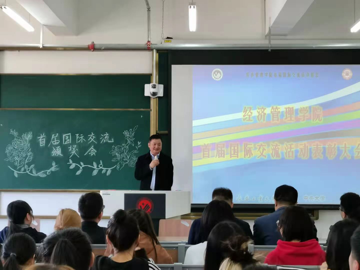 经理张玉智为表彰会做了总结讲话。他高度评价了公司首届国际交流活动取得的成校,赞扬师生在国际交流活动中的努力付出和优异表现,在全校来看是具有代表性的活动之一。同时,他也充分肯定了经济系牵头举办的各项活动,并提出了未来发展的方向,鼓舞师生继续大步向前。
