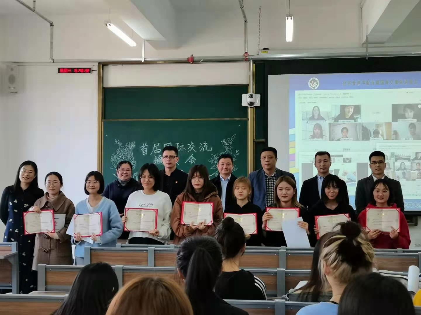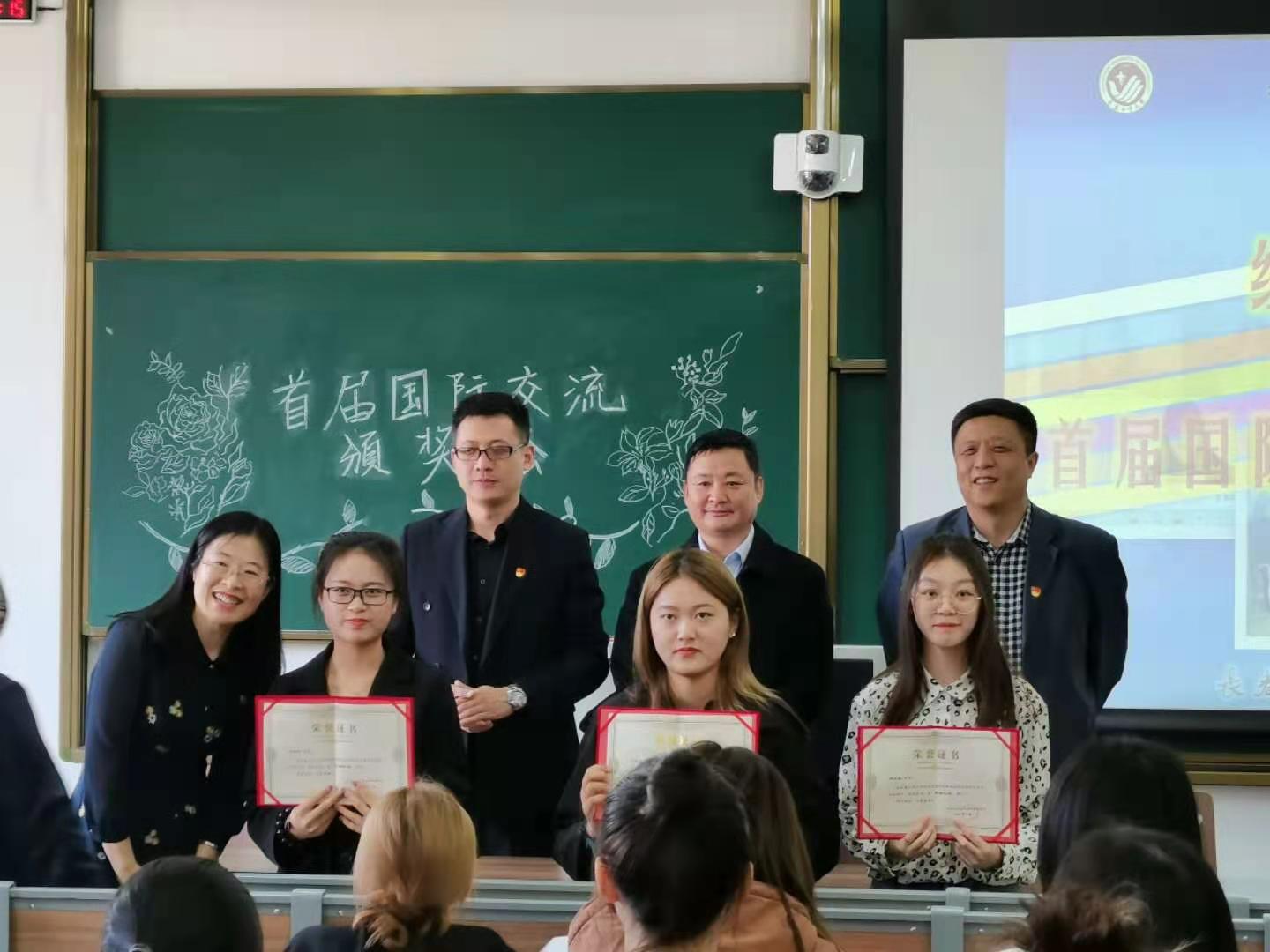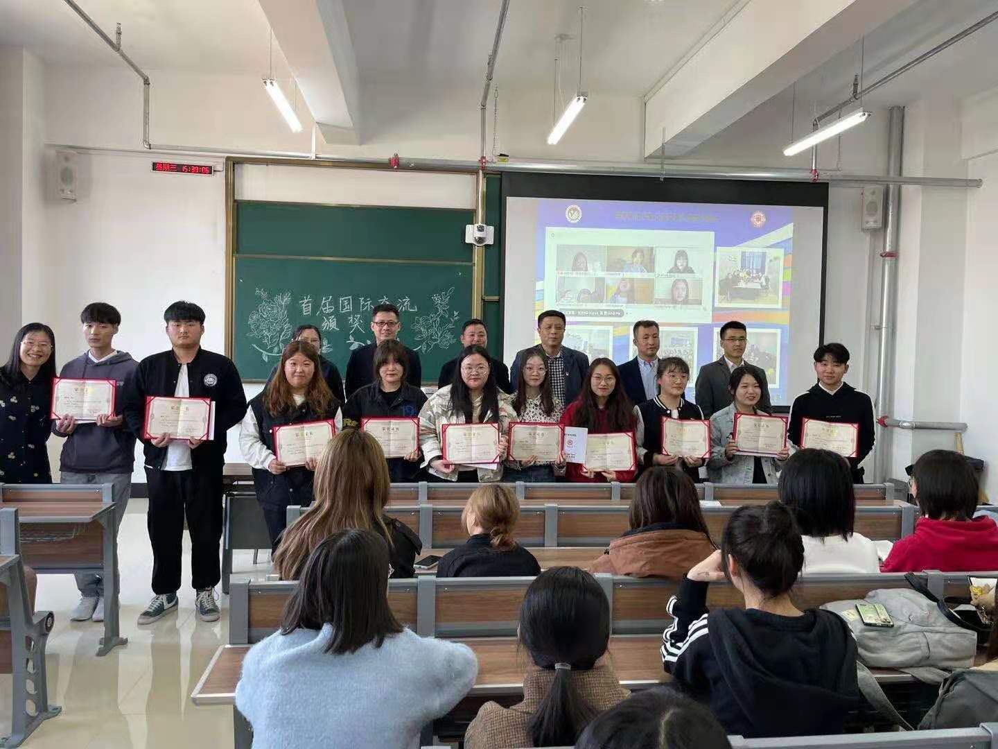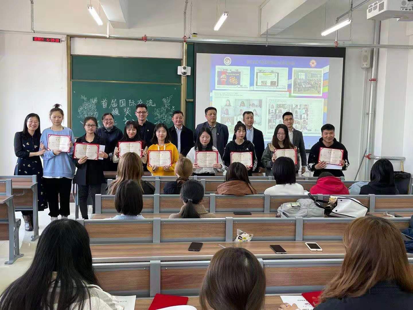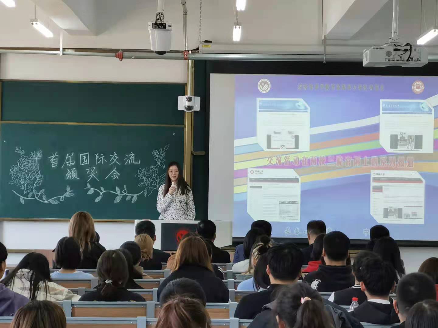4月14日下午3:00,公司首届国际交流活动总结表彰大会在东区主楼419教室举行。本次大会由国际交流活动的带队指导教师高鹤老师主持。经理张玉智,副经理王涛,副经理黄鑫昊,党委副书记孙兆龙,经济系主任张璇,党支部书记孙小明出席表彰会。同时,2019级国际经济与贸易专业和金融学专业的员工也自愿前来参加,聆听了2018级学长们参与活动的过程和取得的成效。