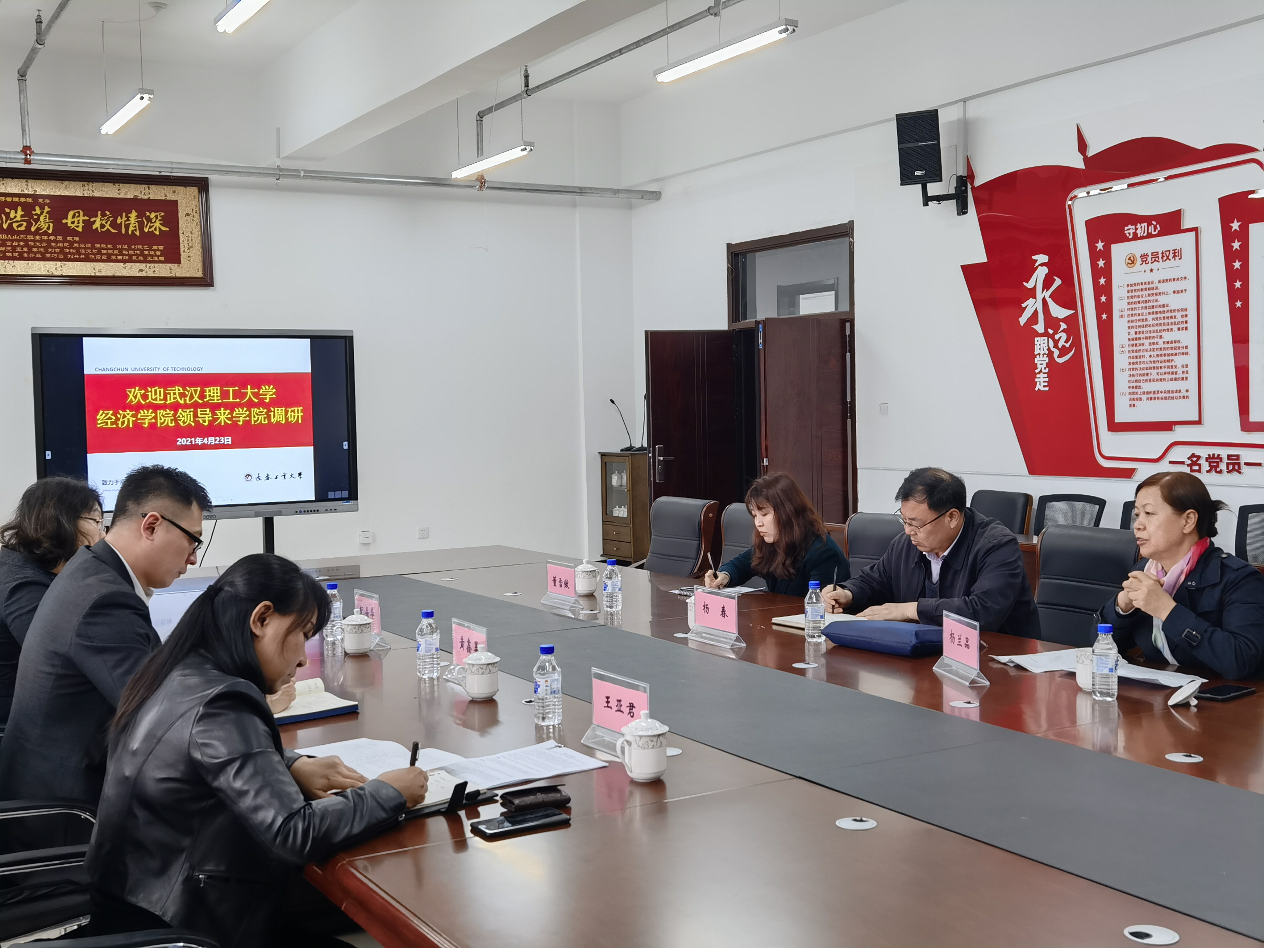 2021年4月23日上午武汉理工大学经济公司杨春副书记、杨兰品教授以及董雪傲老师来公司调研。调研会上,杨兰品教授介绍了经济公司应用经济学的学科发展现状,包括基本情况、学科方向和优势特色、人才培养目标、生源数量与质量以及国内外影响五个方面。黄鑫昊副经理向武汉理工大学经济公司领导介绍了公司基本现状,财会系纪晶华主任与工商管理系王亚军主任分别介绍了公司专业设置与团队建设等具体情况。双方在应用经济学评估经验与未来发展规划上展开交流,探讨专业团队建设方法。
