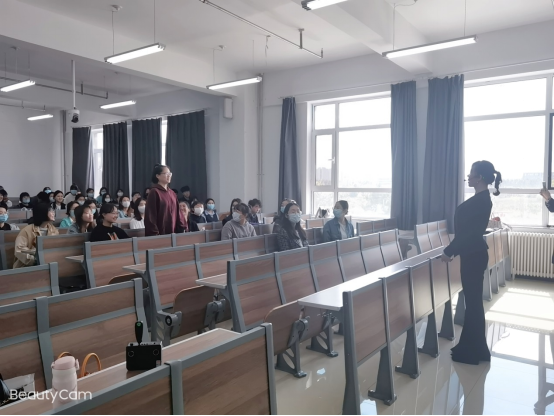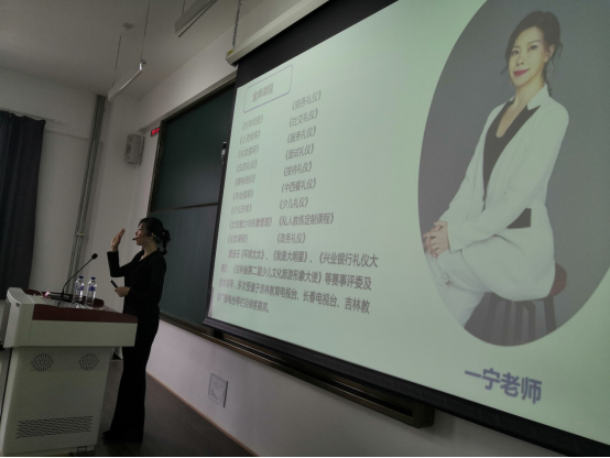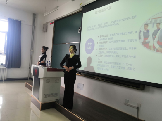 9月23日,高鹤老师邀请到吉林省东方韵雅文化传播有限公司的高级礼仪形体培训师一宁老师和她的得力助手菲菲老师,当天上午和下午分别在北湖东区主楼228教室和235教室开展了两次别具特色的商务礼仪培训。