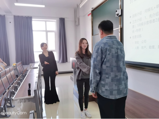 2021年金秋九月,2018级大四毕业生即将迈入求职就业阶段。如何在求职面试和职场竞争中脱颖而出,不但要有深厚的知识内涵,大方得体的言谈举止也必不可少。经济系副主任高鹤针对2018级国际经济与贸易专业综合实训的环节设计时,充分结合本专业人才培养目标以及国际商务礼仪、国际商务谈判、外贸英语函电等相关专业课的课程体系特点,将国际商务礼仪实训作为第一模块。
