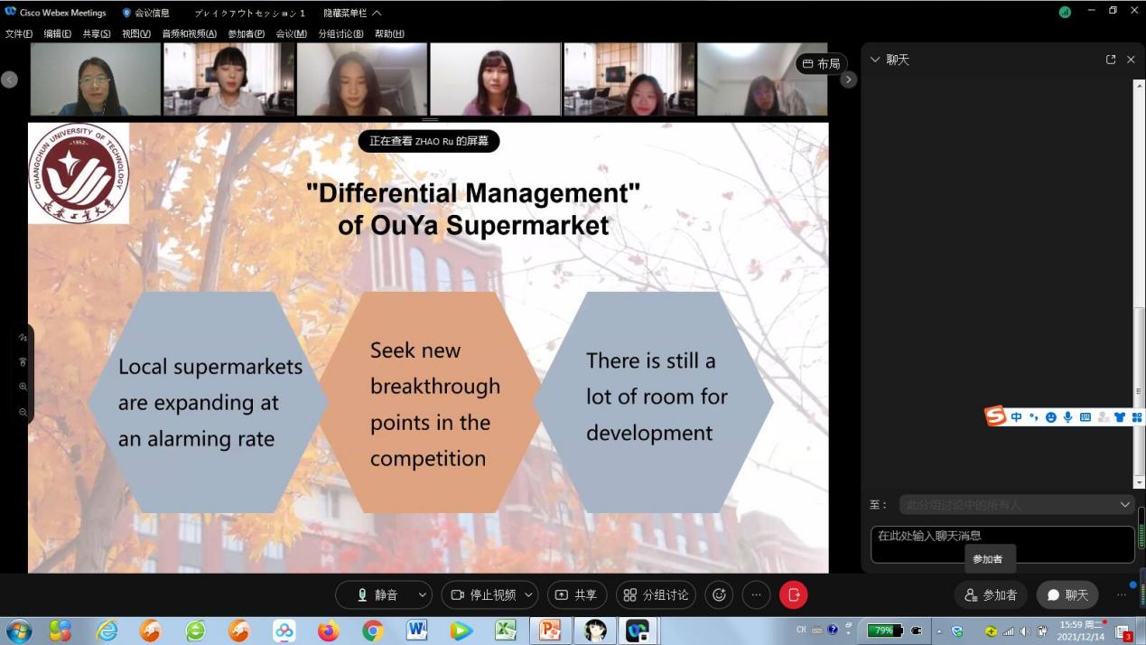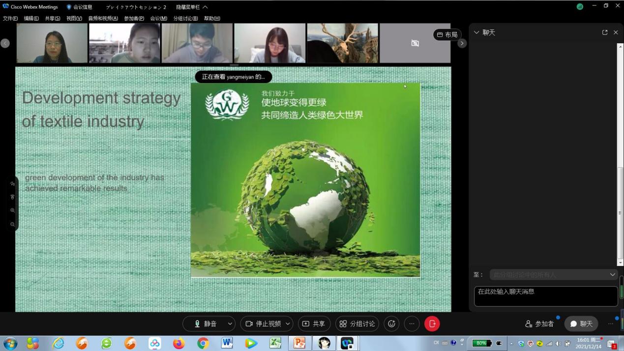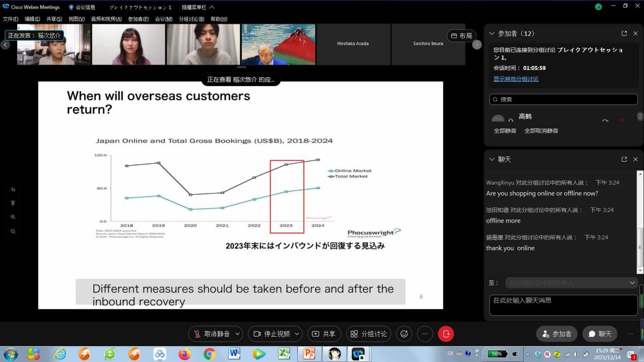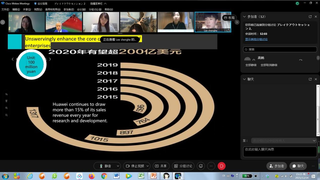 北京时间12月14日下午1:30,经济系高鹤老师带领2019级国贸专业员工团队与日本中央大学经济学部谷口教授指导的三年级研讨小组在Webex平台欢聚一堂,第二轮第二场中日本科生线上学术交流会如期开展,这也是两位老师第二次联手举办的系列国际交流活动,取得圆满成功。