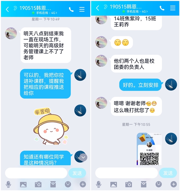 赵英鑫老师肯定志愿者同学并安排补课 摄影:张晴