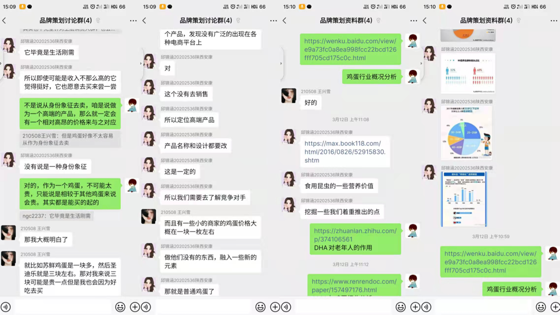 吴雪林、邱锦涵等同学在品牌策划书撰写中的交流