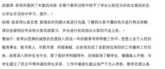 同学们说,程老师语调亲切,总是鼓励我们,充分调动大家的主观能动性,使我们在和谐融洽的氛围中学习,推进了知识的掌握和智力的发展。