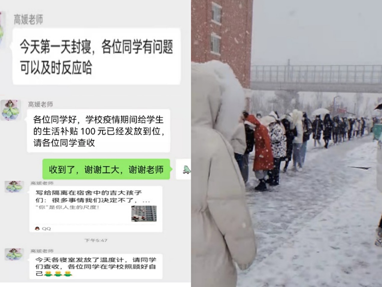 2022年三月,本以为疫情即将过去的我们,携带着新年的憧憬回到想念已久的CCUT的校园里,正当一切平静时,奥密克戎席卷了吉林省,我们的春城,又被迫按下了暂停键。截至2022年3月25日,长春市累计确诊人数为11840,除了党中央及时下发的政策管控,来自全国各地的爱心支援力量,我们的CCUT紧紧拥抱着每一位工大学子,每一位老师都承担起家长的责任给每一位工大学子无微不至的关怀。亲爱的老师们,她们永远站在困难前方,徐徐温情不断传递着安全感。