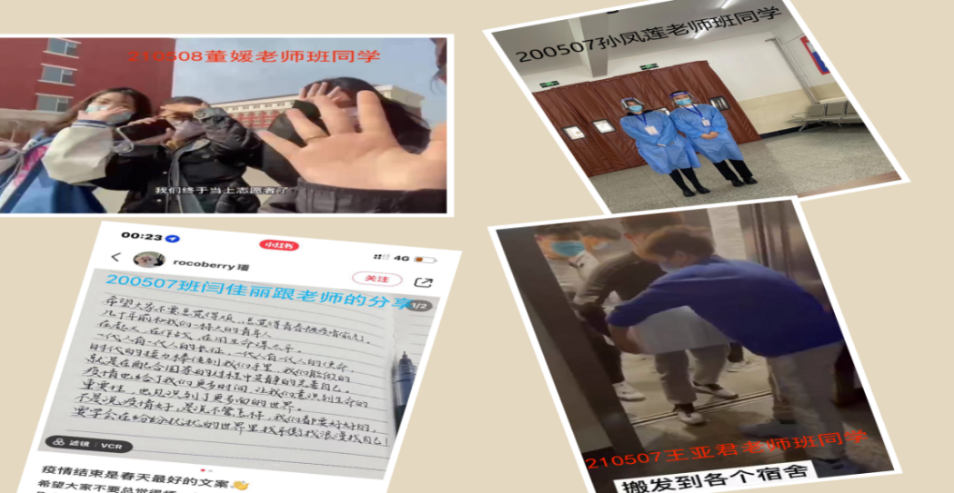 他们是一群“可甜可盐”的00后,是父母捧在手心里的宝贝,但在疫情当前,他们是义无反顾的守护者,他们的担当就是“我可以”。210508班的女同学向班导师董媛老师反应,为什么大一女生不能当志愿者?董老师向公司反应后,两位同学如愿以偿。200507班的团支书回复班导师孙凤莲老师信息时,给老师截屏了一段话,“疫情结束是春天最好的文案...”,班长也时刻回复“咱班挺好地,放心吧,老师”。同学们,孙老师课堂之外的讨论题又来了:“请大家准确计算210507王亚君老师班,盒饭从食堂送达到每一位同学手里,取餐志愿者对饭箱重复了多少次的放下再搬起动作?”大家都说老师出的这题有点难...嗯,是太多的“义”不容辞,给了我们一片安全的净土。