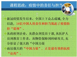 结合当前的疫情和课程内容,杨峰老师设计了诸多“勇于担当”的思政案例。例,在讲解《财政医疗卫生支出》时,结合我国财政在抗击新冠疫情中的巨大贡献,恰当融入“疫情中政府、医护人员和教育工作者的责任与担当”思政元素,培养员工责任感和勇于担当的精神。