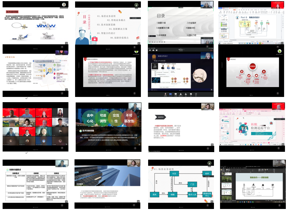 下午17点,答辩正式开始,内容涉及商业保险、社会服务、科技创新等多个领域,针对当前行业面临的痛点,运用区块链技术给出切实可行的解决方案。同时,评委老师也对员工参赛方案给出评析。