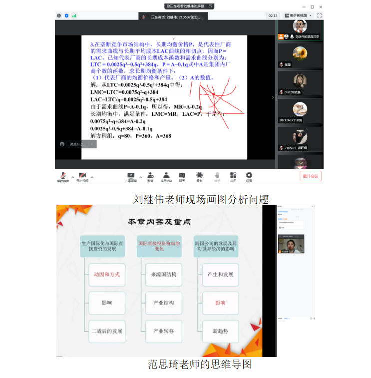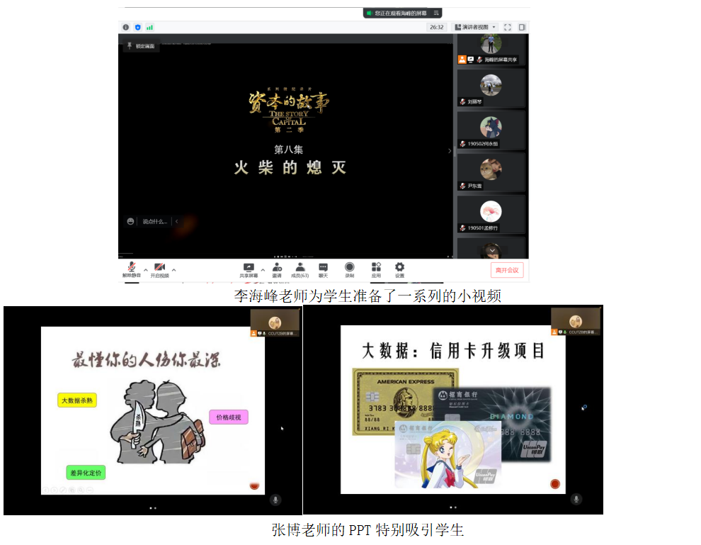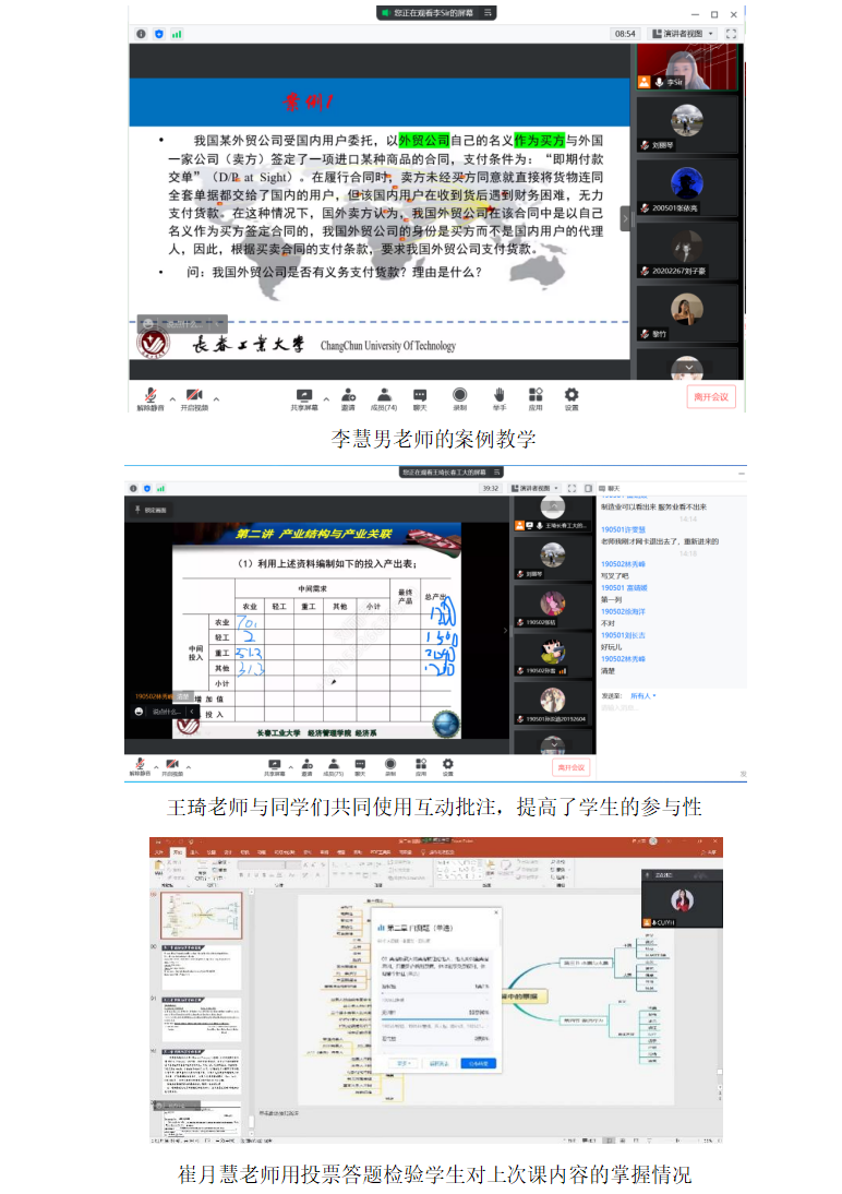 为了提高线上授课的授课和学习效率,经济系的老师们对课程设置都进行了调整。紧跟学科发展前沿更新课件内容,追踪时事和政治经济形势更新充实思政元素,在课堂中增加互动环节,提前制作和精心挑选与课程内容相关的小视频,设置预习及复习任务,为员工发送电子版教材……