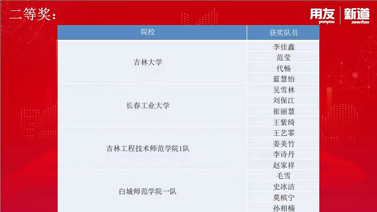 2022年7月12日,第三届“新道数智人才杯”全国高等院校数智人力大赛(人力资源大数据赛项)吉林赛区竞赛圆满收官。经过激烈而紧张的10天竞赛比拼,由工商管理系王亚君老师和王明昊老师指导的两个代表队分别获得了大赛一等奖和二等奖的好成绩。其中韩耀旭、熊柄程、邱锦涵、宋子涵代表队获得省赛一等奖,吴雪林、刘保江、崔丽慧、王紫绮代表队获得省赛二等奖,304永利集团代表队成功晋级全国总决赛。