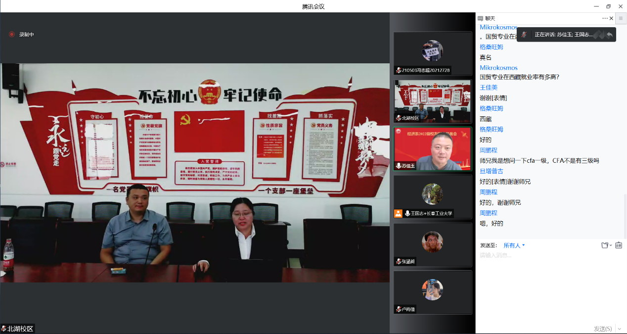 公司网讯(通讯员 冯志超 高雨聪 崔月慧)2022年9月9日下午15:30,公司经济系利用腾讯会议于线上召开了2022级员工新生见面会。本次会议邀请到了经济系优秀毕业生——2001级国际经济与贸易专业员工,现天安财产保险股份有限公司北京分公司副总经理苏佳玉员工。出席本次会议的有304永利集团副经理王涛教授、经济系主任张璇老师、经济系教师代表王国志老师和崔月慧老师,以及经济系2022级全体新生。