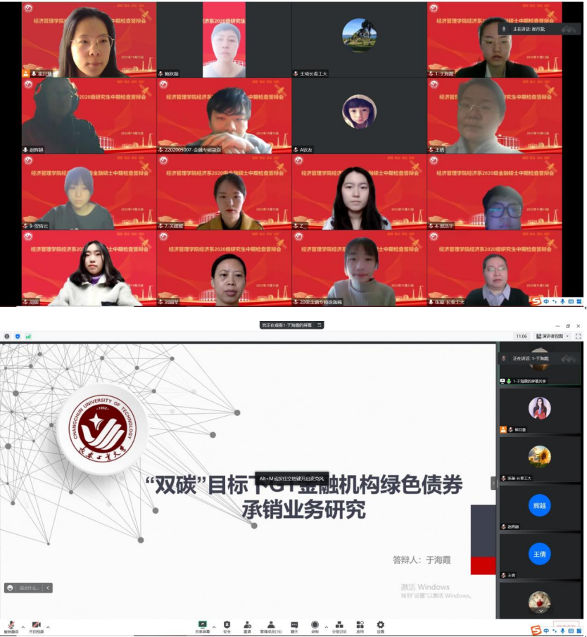 此次答辩会共11位员工参加答辩,经过答辩组及学们的共同努力,经济系2020级金融硕士与应用经济学硕士学位论文中期检查答辩工作圆满完成,为提高学位论文质量打下了坚实基础。