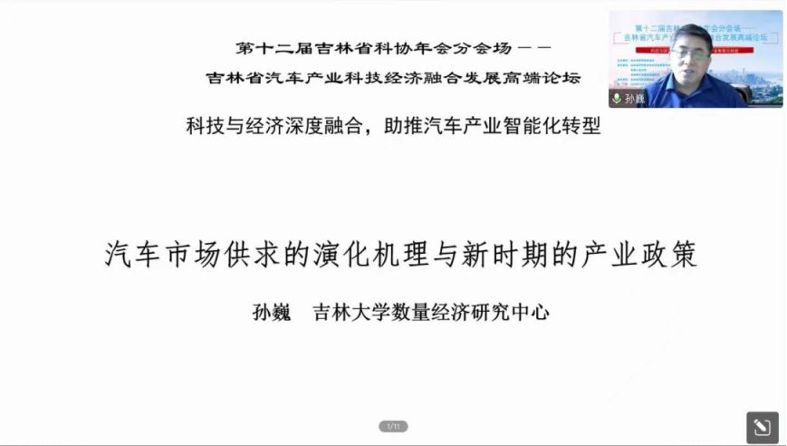 吉林大学商学与管理公司教授,教育部人文社科重点研究基地吉林大学数量经济研究中心主任,吉林省汽车精益管理学会副理事长孙巍作题为《汽车市场供求的演化机理与新时期的产业政策》的报告。
