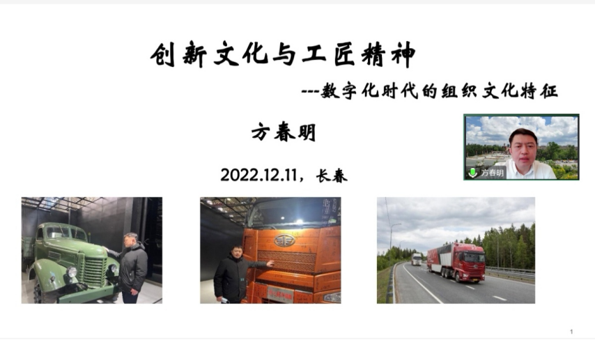 吉林省汽车精益管理学会副理事长,一汽解放集团培训高级主任方春明作题为《创新文化与工匠精神——数字化时代的组织文化特征》的报告。