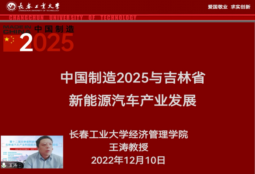 王涛教授作报告:《中国制造2025与吉林省新能源汽车产业发展》