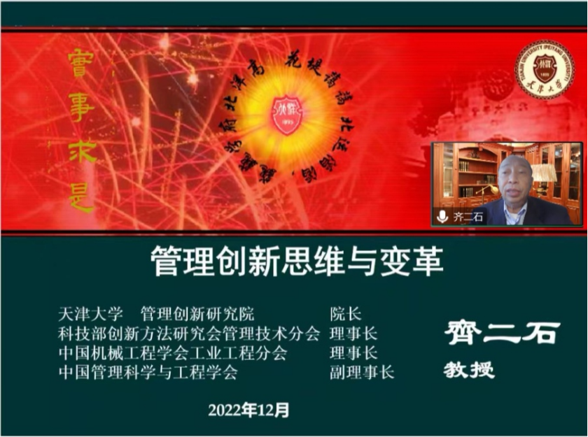 齐二石教授作报告:《管理创新思维与变革》