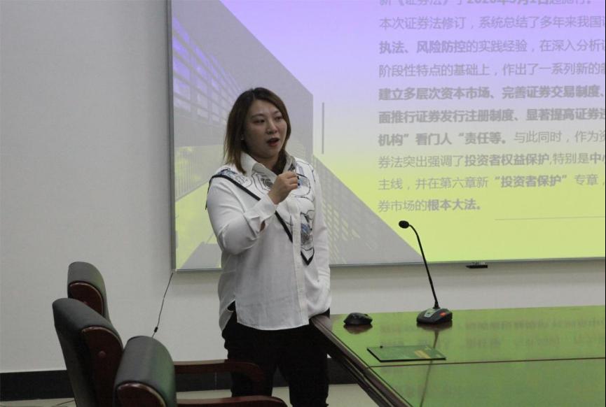 授牌仪式后,由申银万国研究所分析师王璐进行宏观经济形势与金融市场分析,着重分析当前宏观经济发展趋势,探讨金融市场的动态变化及其对产业发展的影响以及讲解宏观经济知识。由申万宏源证券投教基地负责人冉倩之进行金融职业规划,指导员工如何进行职业规划,介绍证券市场的基本知识和投资策略。