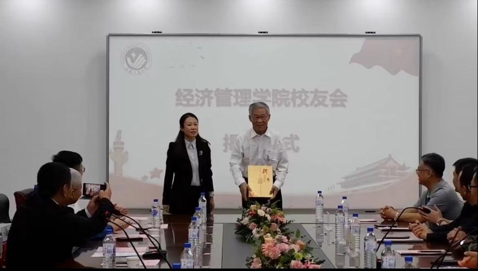李东玲为公司员工会名誉会长杨长生颁发聘书 摄影:刘润泽