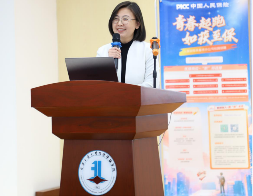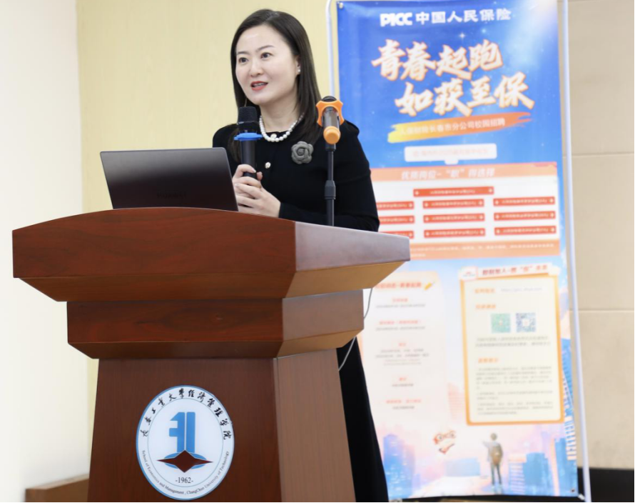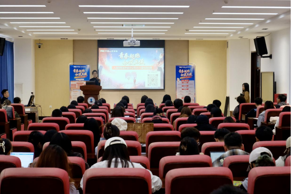 宣讲会伊始,杨爽副经理首先代表公司对人保财险吉林省分公司的到来表示热烈的欢迎。随后人保财险宣讲官详细介绍了关于我们、发展历程及业务布局并向同学们解读了2025届校园招聘的具体岗位需求、专业需求、入职待遇及报名流程,并展示了公司的职业发展前景。