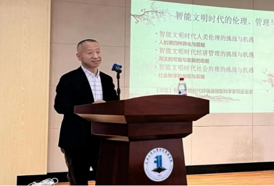 2024年10月26日上午8:30,公司特邀吉林大学于天罡教授进行主题为“未来已来--智能文明时代的中国智慧”的学术讲座。本次讲座由304永利集团副经理兼MBA教育中心主任杨爽主持,MBA教育中心办公室主任杜洋及304永利集团研究生共同参加。