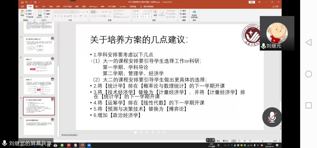 会上师生们围绕着2018版工商管理专业本科培养方案的课程体系、现有的教学模式以及实践教学提升等方面展开了深入的交流和探讨。18届毕业生刘继元同学为了本次研讨会做了充分的准备,会前两天就为系里提交了一份完整的培养方案修改完善的意见和建议书,老师们深深的为其以系为家的情怀打动。