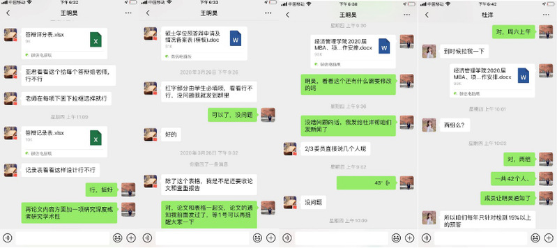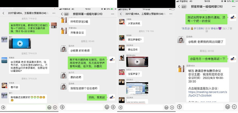 为保证答辩工作的顺利进行,预答辩工作组提前进行了大量的准备工作。第一次组织线上预答辩工作,需要提前考虑和安排好各项细节工作。工商管理学科负责人王亚君和学科秘书王明昊以及MBA中心办公室主任杜洋等工作人员成立了预答辩工作组,召开了多次线上组织协调会,研讨和制定了详细的线上预答辩工作方案及应急预案,专门组建了2020届毕业生的微信群,在公司网站和员工微信群分别发布了预答辩工作方案。截止到3月18日共计49位同学报名参加预答辩。截止到4月1日晚17:00共计有44名同学提交了电子版的预答辩申请和PDF格式的毕业论文。通过毕业论文形式初审,42名同学获得预答辩资格。