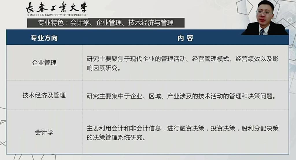 在讲解第二部分招生计划与专业特色时首先对公司9个硕士招生专业的招生政策、专业特色、研究方向、核心课程以及考试科目进行详细的介绍。