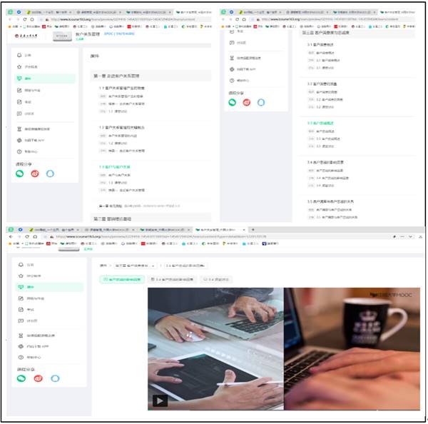 充分利用平台功能及优质教学资源,完善线上资源,以使平台价值最大化。在腾讯会议上,王老师选择了慕课《客户关系管理》作为课程补充,设计8章内容42个视频的拓展学习。