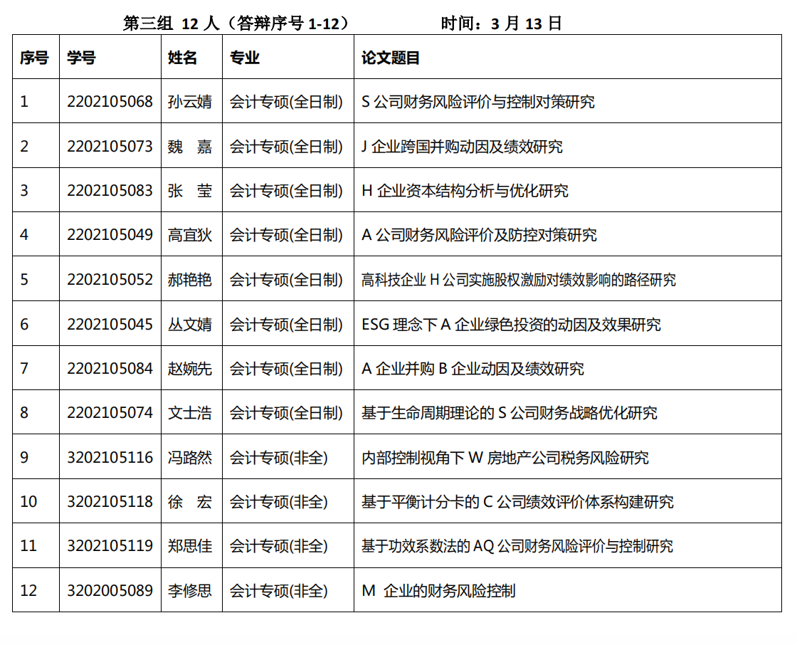 公司网讯(通讯员 张雷)为进一步加强会计专业学位硕士公司产品过程管理,提高学位论文质量,根据研究生学位论文工作相关安排,公司拟对全体2024届会计专业学位硕士研究生组织毕业论文预答辩工作,具体工作安排如下: