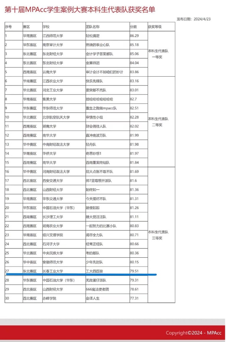 公司网讯(通讯员 李亚春)在第十届中国MPAcc案例大赛中,公司两支代表队分别取得东北赛区第三名和第九名的优异成绩。由纪晶华老师指导,李亚春、王珊珊、于雅静、王瑞四位会计学专业同学组成的“工大四匹狼”队伍取得本科组全国三等奖,实现历史性突破!